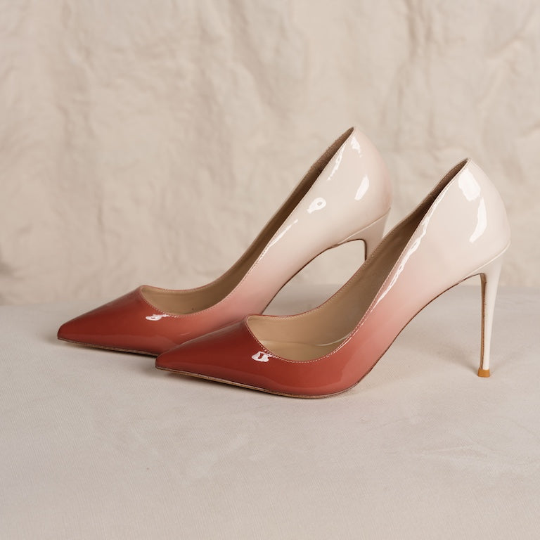 - Shoe Type: Pointed-toe stiletto pump with color block design