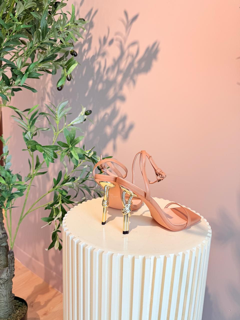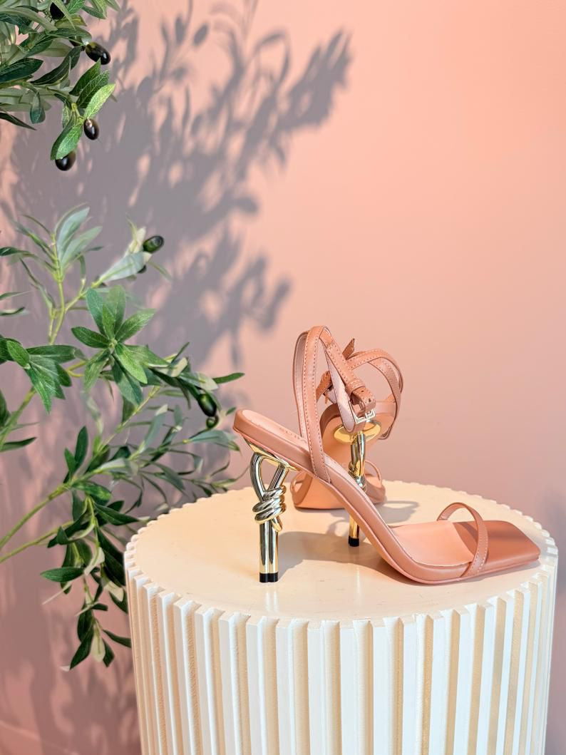 Golden Knot is minimal in form, maximal in impact, crafted in smooth tan vegan leather and elevated with a twisted metallic heel that transforms every step into a statement. Designed for the modern woman who blends simplicity with power, this style is your golden accent: rare, refined, and unforgettable.