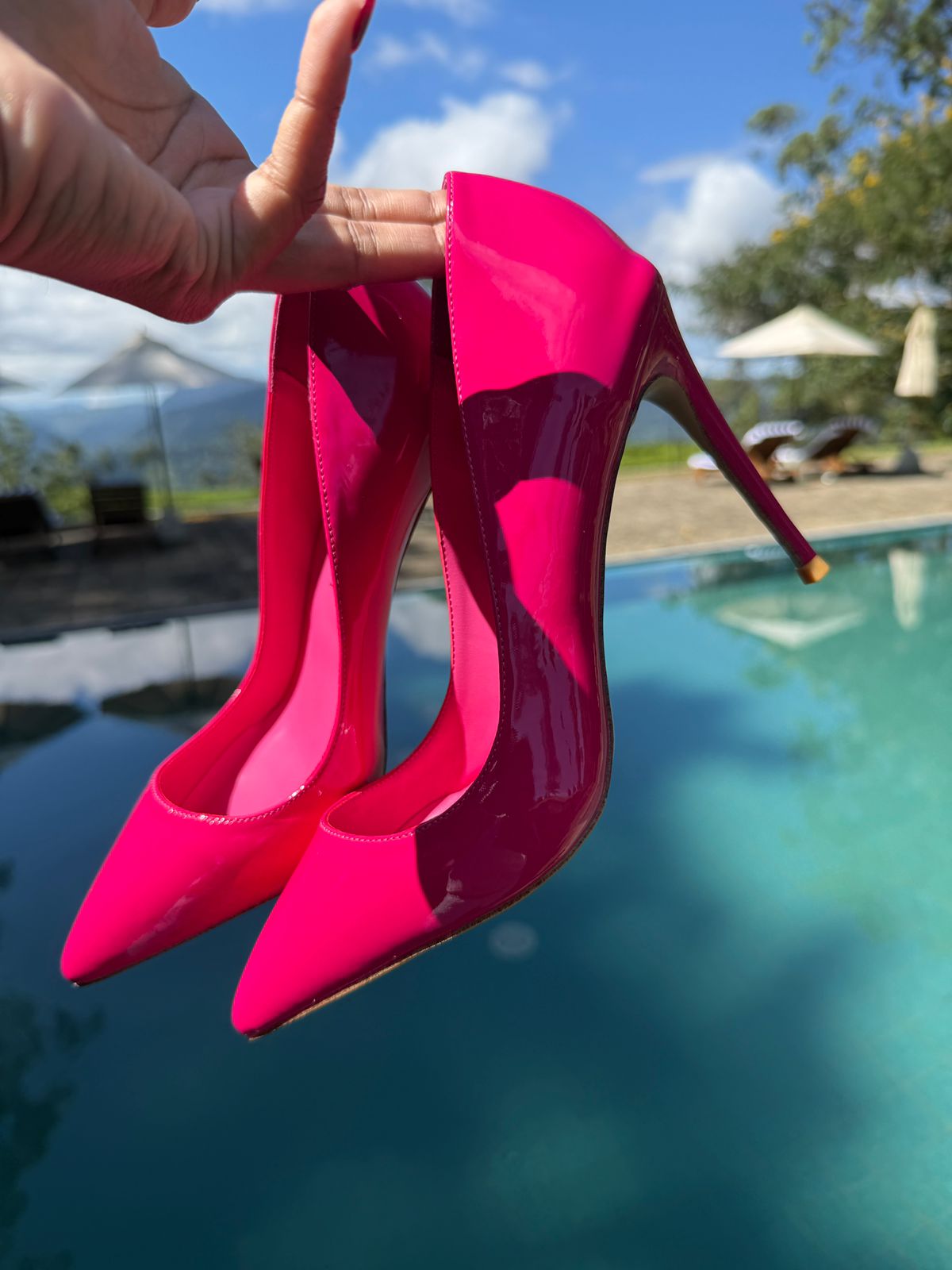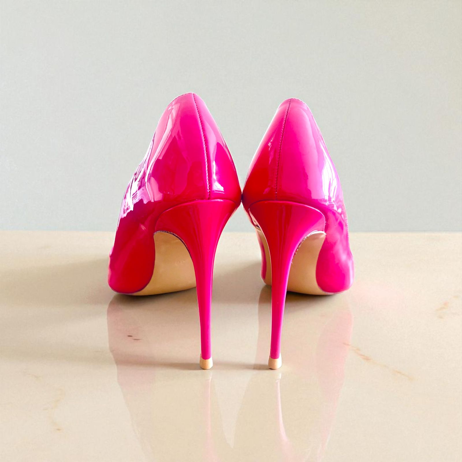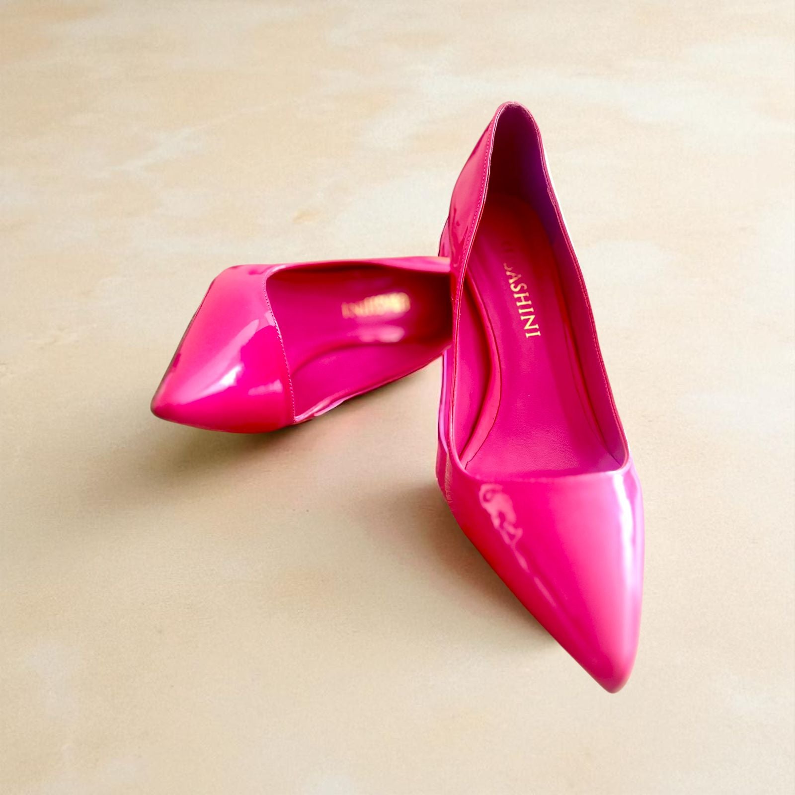 - Material: High-gloss fuchsia patent leather (PU) upper with smooth lining